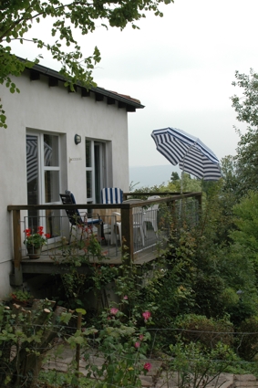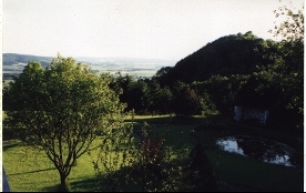 Die Lage des Hauses zur Burg Schaumburg Blick über den Garten ins`Wesertal